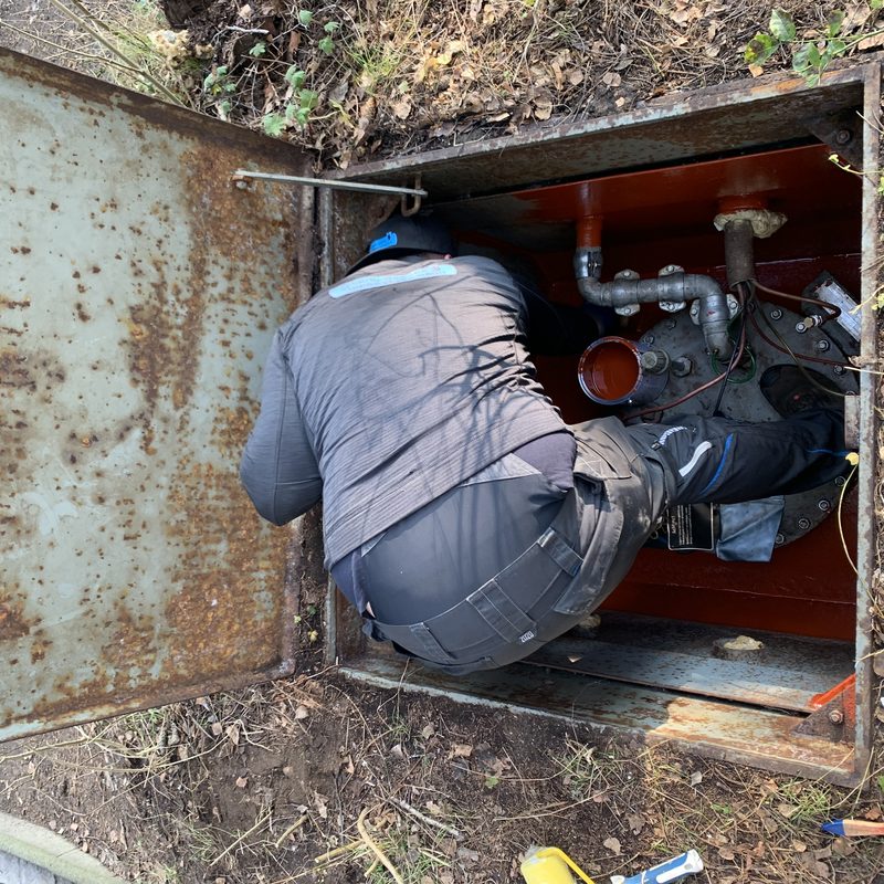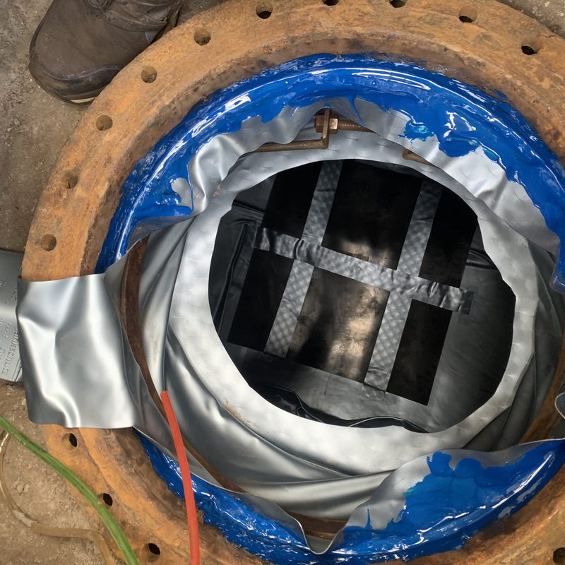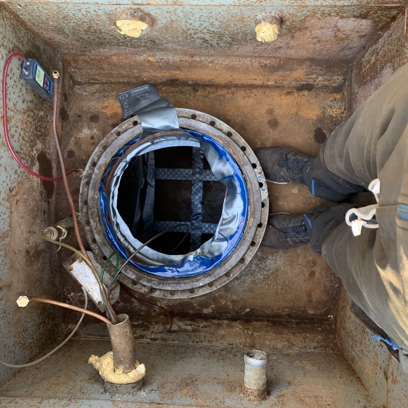 Brandenburg an der Havel, Einbau einer Tankinnenhülle in einen vormals Flüssigkeits Überwachten Behälter, mit Leckanzeigegerät im Schacht.